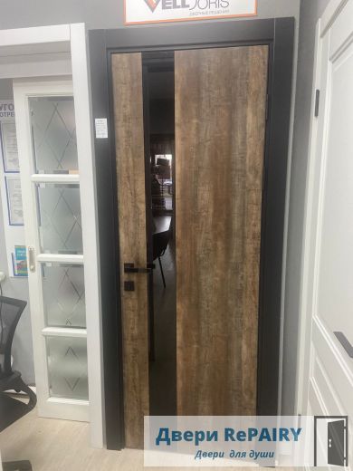 Межкомнатная дверь с кромкой черной, стекло черное крашенное, магнитный замок в подарок.