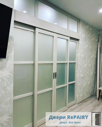 Раздвижные перегородки и двери из массива сосны+МФД, покрытие экошпон.
