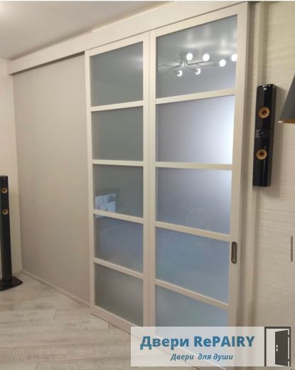 Раздвижные перегородки и двери из массива сосны+МФД, покрытие экошпон.