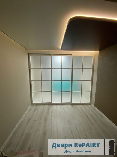 Раздвижные перегородки и двери из массива сосны+МФД, покрытие экошпон.