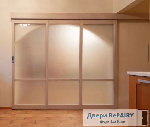 Раздвижные перегородки и двери из массива сосны+МФД, покрытие экошпон.